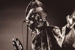 Photo is unique image of a member of the Swedish psychedelic band GOAT taken as they headlined Manchester Psych Fest at Manchester Academy, on the 30th August 2025.
